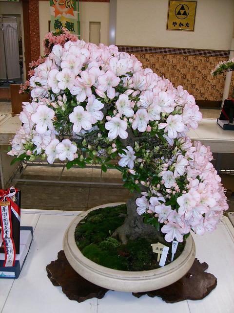 First I will discuss bonsai. Bonsai are small trees that are usually kept artificially small by their growers. They are often very beautiful. The majority of the bonsai at the Bonsai Tenjikai were Satsuki azaleas.
