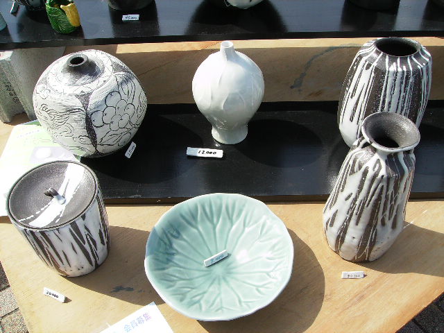 Here are some miscellaneous banko items. Not cheap. The vase in the middle is 12,000 yen, or $148.43 in US Dollars at today's exchange rate.