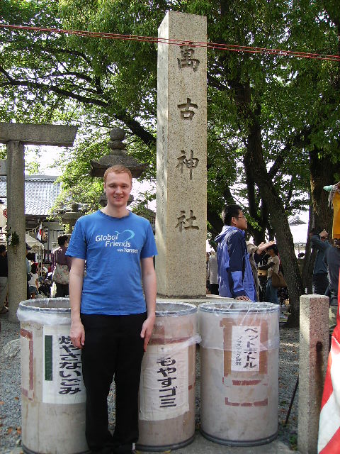 Me, Standing in Front of Some Recycling Bins Placed Unaesthetically Right in Front of the Banko Jinja