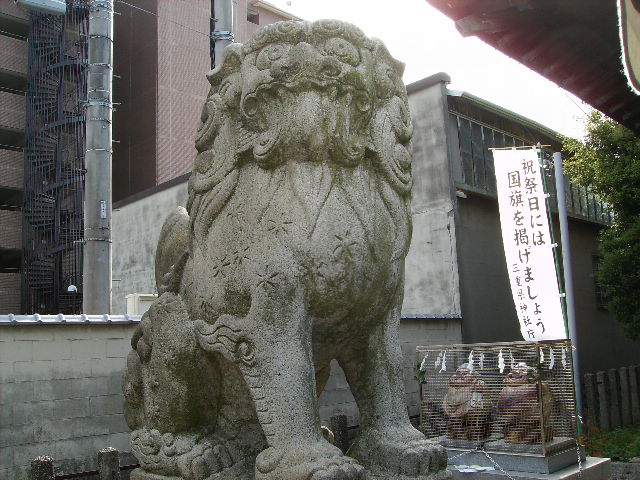 On the left is the Yama no Kami-sama, or God of the Mountain. On the right is the Umi no Kami-sama, or God of the Sea (note the scales and fin). Three offering dishes have been placed in front of the statue, holding (from left to right) water, uncooked rice, and salt. I asked the priest why (he could speak English) and he said it's because they are important substances to humans. Okay. I knew that. But why water, rice, and salt, and not something else? I declined to ask him that, however. I'm sure this is just how Shinto practitioners do things.