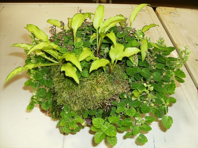 Many bonsai have moss at the base, known in Japanese as "koke." However, this is an exceptional example, with a ball of dirt and moss called a "kokedama."