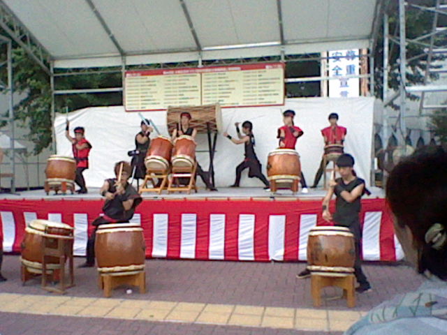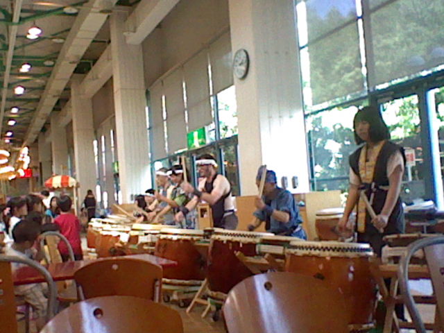 One of the former English teachers of Big Apple, who is also named "Charles," came back to Yokkaichi last weekend to play in the taiko drum ensemble. They played a gig at Kayo Mall, in the food court. Kaori invited me to watch them. He is the third guy from the right, and speaks great Japanese, and lives in Japan on a permanent basis; his wife is Japanese.