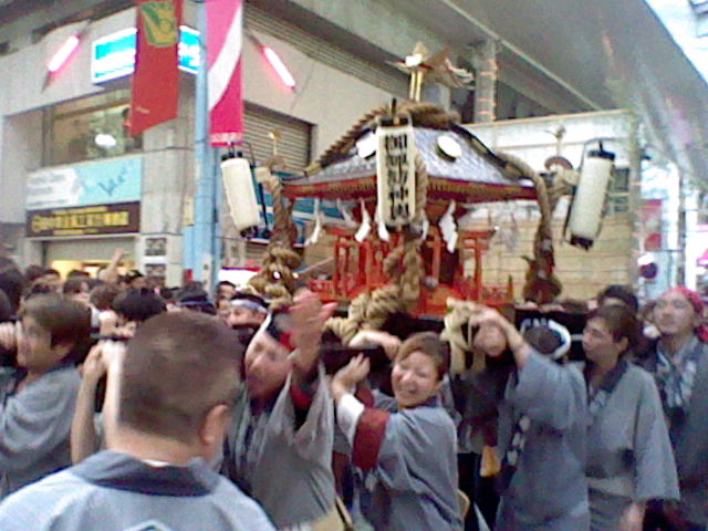 Portable Shrine and Portable Shrine Bearers Near the Kintetsu Yokkaichi Station