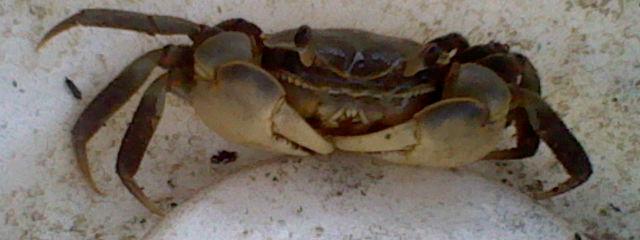 Here is one of the terrestrial salt marsh crabs. This crab ended up pinching me a bunch of times when I caught it! They have strong claws.