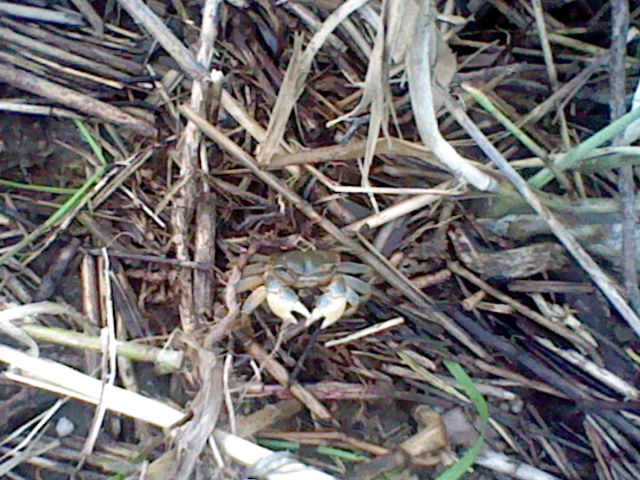 Here is a salt marsh crab I found along the Suzuka River near the ocean. It pinched me a number of times, but fortunately didn't break the skin...