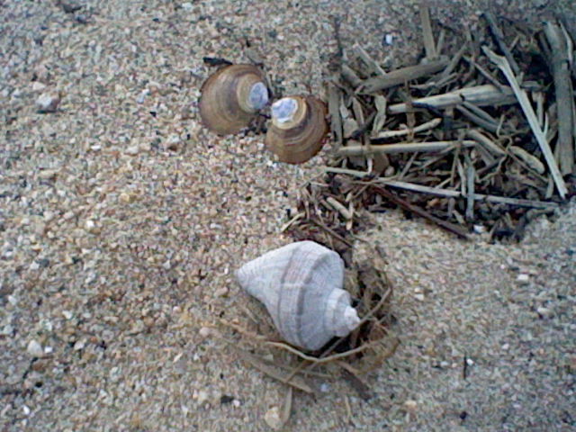 The beach has a few interesting shells such as these, moon snail shells, and the occasional cuttlefish bone.