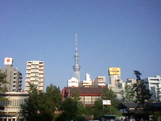 Tokyo Sky Tree, Still Under Construction (note the very faint red crane on the right side of the building on top of the big circular part — the outside of Tokyo Sky Tree is pretty much finished, but the inside is still under construction at the time of this writing)