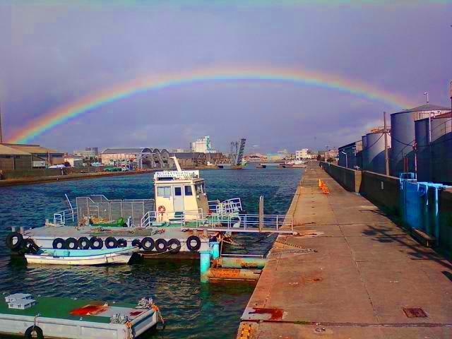 The immigration office is located on a small island connected to Yokkaichi by a bridge (because it is the immigration office for Yokkaichi Port). While I was crossing the bridge, there was an incredible rainbow: