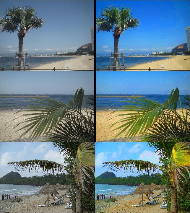 I have a number of pictures that I took on tropical or sub-tropical beaches, particularly in Taiwan and Kyuushuu (these are all old photos taken between 2007 and 2010). The pictures had always looked somewhat washed out. Earlier this year, I discovered that the way to have postcard-quality beach photos is to adjust the saturation. I have found that adjusting the saturation to 300% works wonders for pictures like this, and intend to do this with almost all my beach pictures in the future. This works on most cameras (the photos below were taken on two different cameras, a Sunpix and a Kodak):