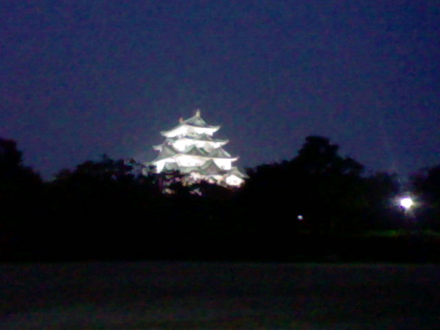 ![]() | By the time I took this picture, more than 20 minutes had passed since sundown, so I got a nice night shot. Note how they illuminate Nagoya-jou at night. | |