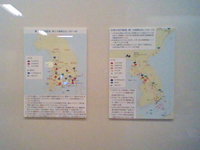 By the 1590s, Hideyoshi had succeeded in unifying Japan, which before him had been divided for centuries under various houses. Emboldened by uniting Japan into one state, Hideyoshi then came up with a grand plan to not only conquer China, but India, as well! How or why he planned to accomplish this will never be known, because he was ultimately defeated. Some speculate that he only mounted the invasion to get rid of excess samurai who could rise up and challenge his power. Korea stood in the way of China, so he decided to march across it. The Koreans were less than thrilled, and a series of invasions of Korea ensued (one in 1592 and one in 1597, both ultimately failures due to Yi Sun-shin's iron-clad "Turtle Ships" (Korean: geobugiseon) and other factors in favor of the Joseon Dynasty's military). The united Japan passed from Hideyoshi's hands to those of Tokugawa Ieyasu, who began the Tokugawa Shogunate/Bakufu reign (which lasted until the mid-1800s). Ieyasu also closed Japan during "Sakoku," or "Closed Country." During Sakoku, outsiders were not permitted into Japan except for the Dutch at Dejima and the Chinese at a slightly larger artificial island, also in Nagasaki Bay. The little western learning that entered Japan during that period was via Dutch texts, and was called "Rangaku." Note that "Ran" is a corruption of "land" from "Holland," and "gaku" means "study," so the term "Rangaku" literally refers to "Dutch learning." Eventually, in the 1850s, Commodore Perry sailed into Japan and forced Japan to open up to the outside world. However, jumping back to Hideyoshi, it was Hideyoshi who unified the country, and Tokugawa Ieyasu (his immediate successor) who put Japan into nearly 300 years of isolation.