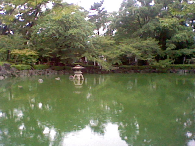 ![]() | Here is one of the prizes of the bunch. One of Nagoya-jou's outer buildings is reflecting into the moat. This spot is very romantic; I ended up taking a picture of a couple in front of Nagoya-jou and its moat. | |