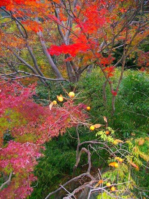Here are some persimmons growing wild on a persimmon tree in the Yunoyama Onsen/Gozaisho area. The Japanese word for "persimmon" is kaki. Persimmons can be made more palatable by putting them in the refrigerator for a while, where they become softer, gooier, and sweeter — a technique I learned in Korea called dan-gam.