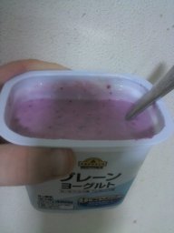 | ...then followed that up by mixing approximately half a 75-gram cup of blueberry/black currant jam with 450 grams of plain yogurt. The result was over a pound of delicious blueberry yogurt with a cost of only ¥147 (¥98 for the tub of plain yogurt, ¥98 for the cup of jam, of which I only used half):