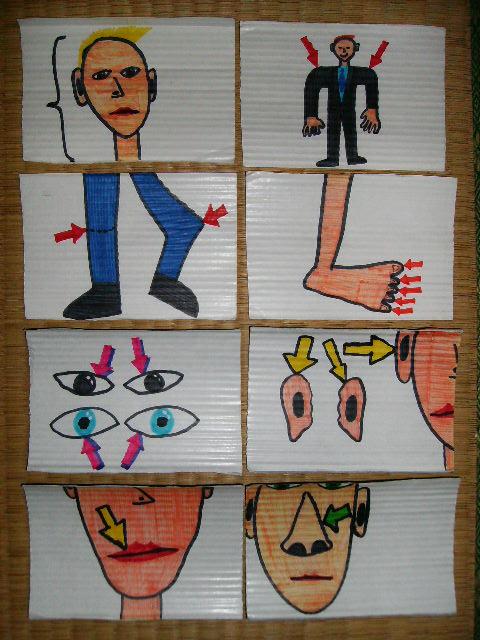 - If the letter is wrong, draw the left leg, the right leg, the left arm, the right arm, attach the body (a magnet made from cardboard) and last of all, the head (also made from cardboard), depending on whether the letter they got wrong was the 1st, 2nd, 3rd, 4th, 5th, or 6th letter that they got wrong.