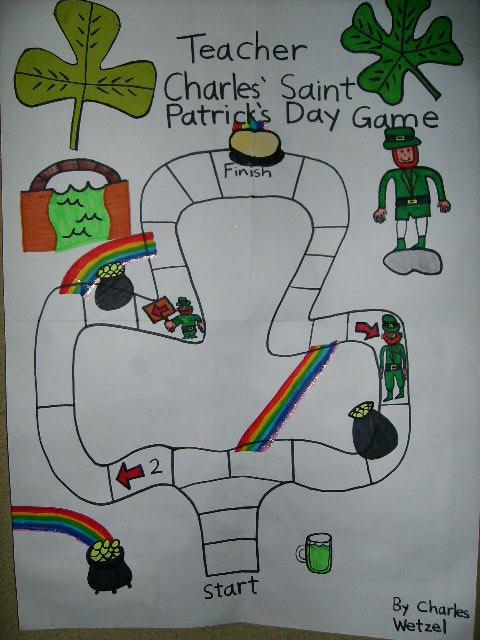 | 1. Teacher Charles' Saint Patrick's Day Game This is a board game that is best played in March. If the students are intermediate or advanced, perhaps the teacher can even explain about Saint Patrick's Day and use the pictures on the game as visuals. Here are the rules:- There are multiple teams of students (at least two). Each team gets a different-colored magnet, and who gets to pick the magnet and go first is determined by Rock, Paper, Scissors.