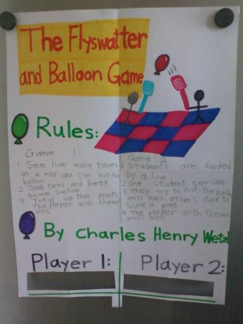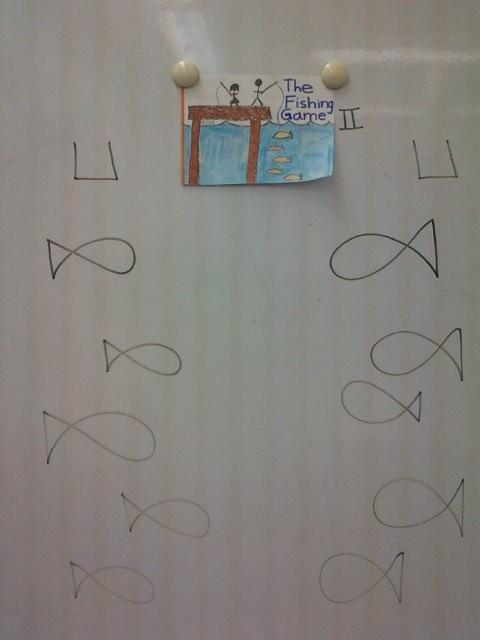 | 13. The Fishing Game This game involves STs "catching fish" by throwing a sticky ball at them. The rules are as follows:- Have ten "fish" on the board. These can either be drawn on with whiteboard markers, or for something a bit fancier, made out of laminated construction paper and held up with magnets.