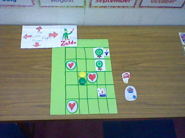 The Zelda Game | 32. Teacher Charles' Zelda Game This is a somewhat complicated, time-consuming game similar to the Dragon Quest Board Game. To be honest, I don't really recommend it unless your class has a lot of time to kill.For rules, see #20, the Dragon Quest Board Game. However, the enemies are different. Rather than blue slimes, there are octoroks. Rather than red slimes, there are Zoras. Rather than leveling up after battle, people can increase their characters' life by picking up heart containers (start each ST with three). Rather than an inn, there is a fairy. The goal of the game is to get the Master Sword. Aside from that, the rules (gameplay, movement, random encounters, etc.) are the same as the Dragon Quest Board Game (#20). Or make up your own rules. Just have fun. This game can be interspersed with English words to be educational, and also practices directions. |