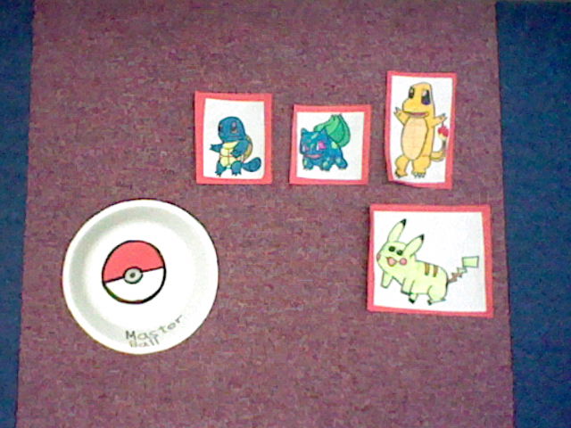 - Take the pictures that they found and put them in a box. The ST who caught the Pok\E9mon gets three tries to throw the "Pok\E9ball" (actually a paper bowl with Pok\E9ball decoration) over the Pok\E9mon he just "encountered."