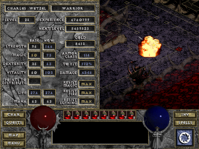 As a result of all this stat building, this playthrough was much, much easier. I only died once the whole time (and that was when fighting Diablo and his minions).