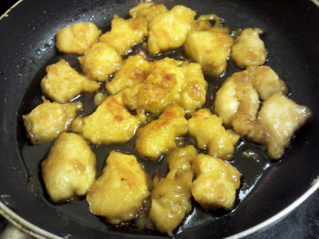 In the Frying Pan: Oil the pan and put the stove on setting 3. Cook the chicken until it is white, then add the sauce and boil the chicken with the sauce (with a cover) until golden brown. | Torimune no Amasuni without the optional ginger, garlic, sesame seeds, and mayonnaise (from the first cook): It turned out well if I do say so myself. Definitely worthy of the chicken restaurant Los Pollos Hermanos.Notes